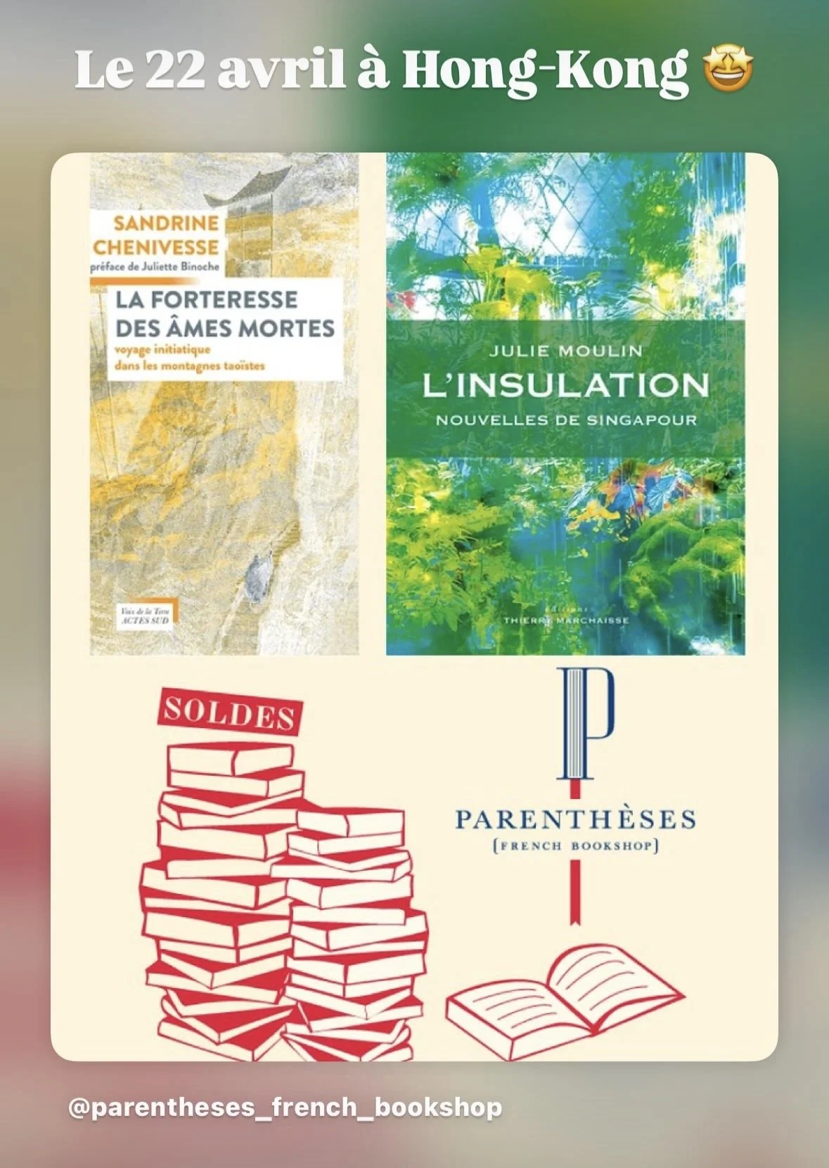 6 février 2026 - J’ai le plaisir de vous convier autour de mon recueil de nouvelles L’insulation, à Singapour, Hong-Kong, Genève et Paris.