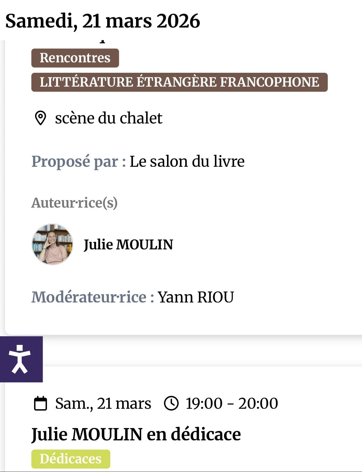 1 mars 2026 - Rencontre le samedi 21 mars à 18h sur la scène du chalet au Salon du livre de Genève. La rencontre sera animée par Yann Riou et sera suivie par par une séance de dédicaces.